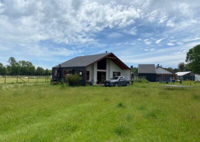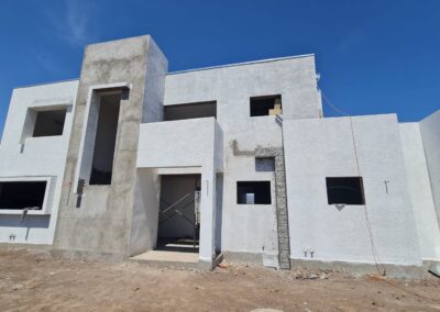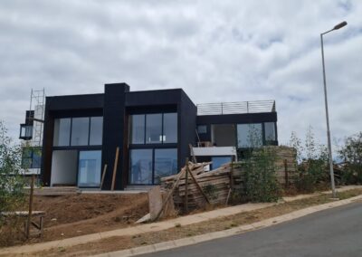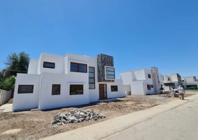 • Desde el momento que se solicitan los permisos de construcción y se inicia la faena con la toma de niveles que van de acuerdo a las características del terreno, y luego la limpieza del terreno, los cimientos, las nivelaciones, muros, encadenado, cielos, aislación, techos y sistema de drenaje,  pintura, puertas y ventanas, instalación eléctrica, instalación hidráulica y sanitaria, alcantarillado, acabados, jardín, nuestros clientes se sentirán seguros de donde van a vivir.